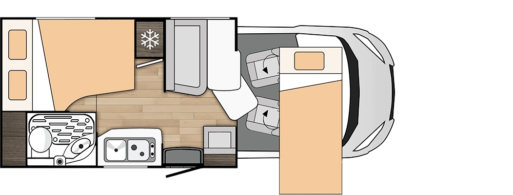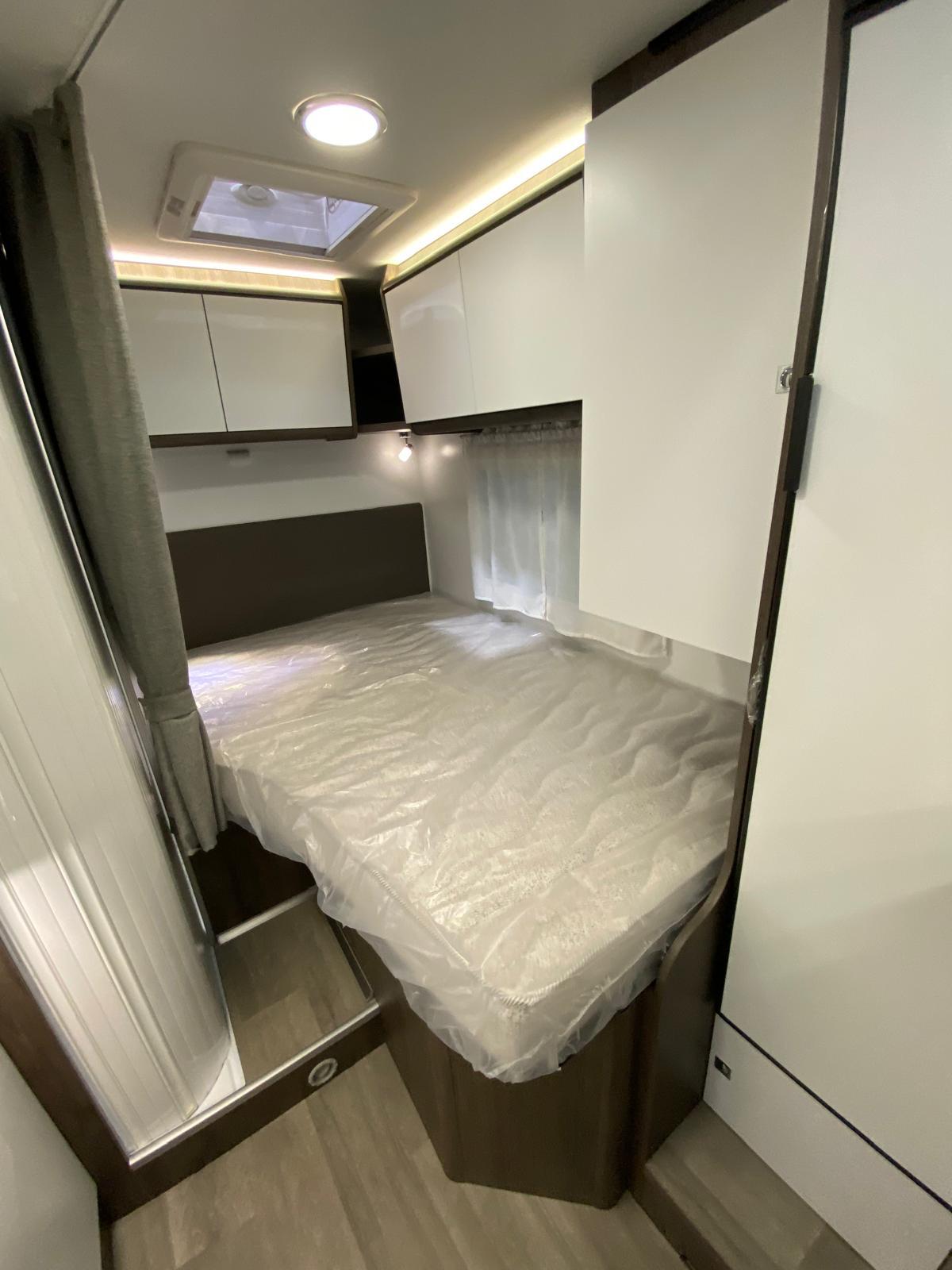 • Zona de descanso: El dormitorio cuenta con una cómoda cama francesa de 132×196 cm, perfecta para dos personas. Además, el salón se convierte en una cama adicional, permitiendo alojar a un tercer pasajero cómodamente.