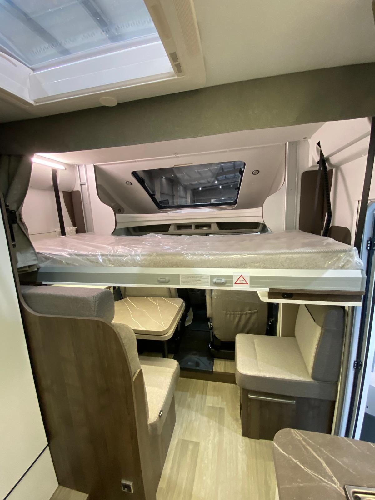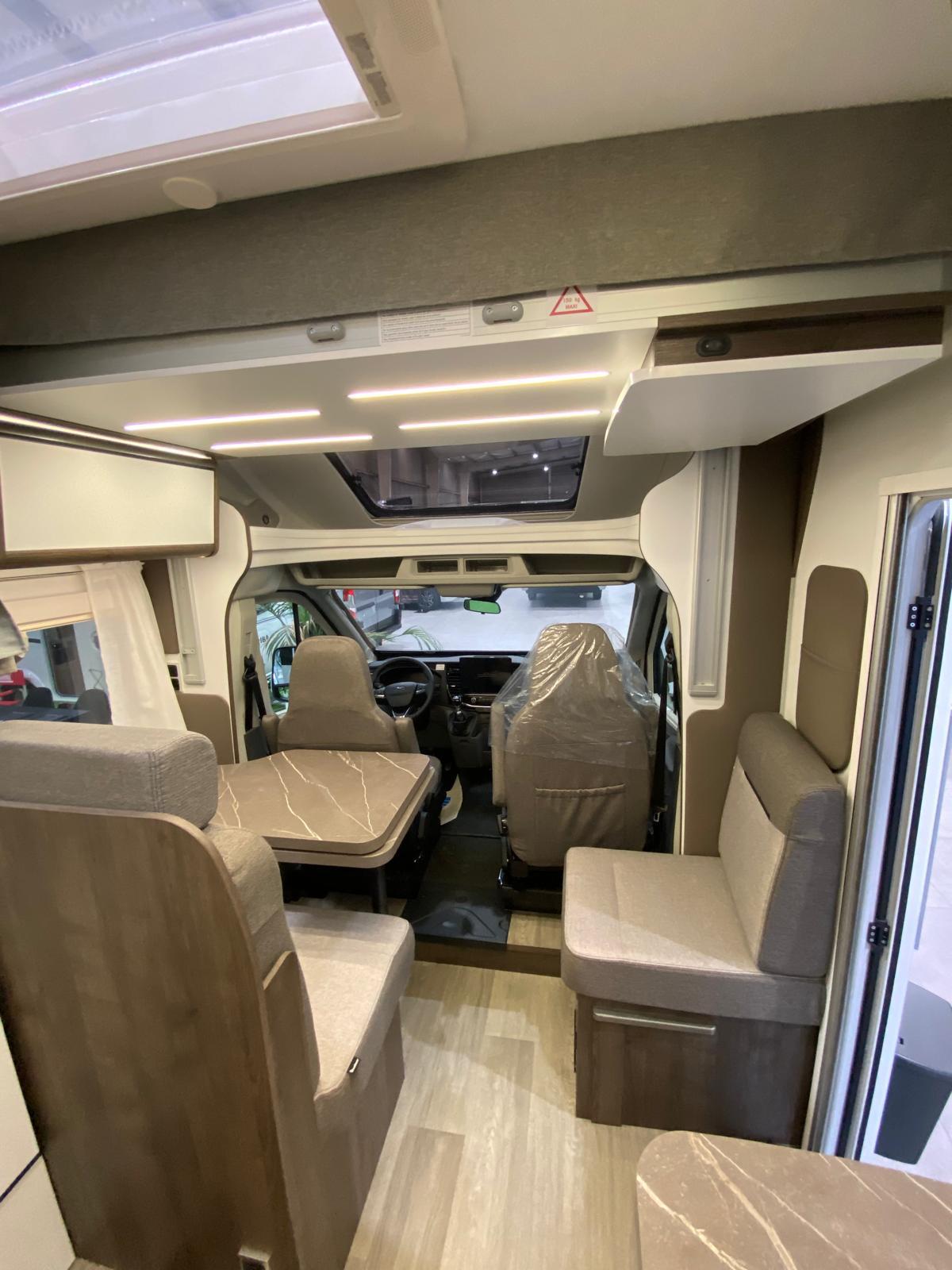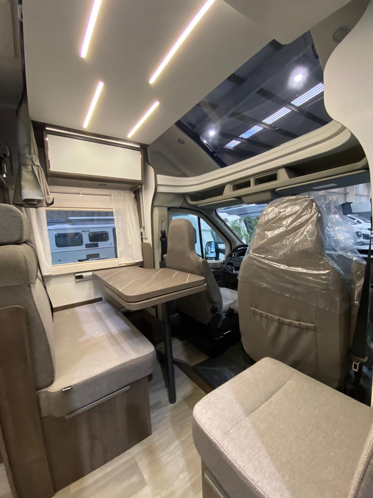 El interior de la Benimar Tessoro 430 está diseñado para ofrecer una experiencia acogedora y versátil. Con 4 plazas homologadas para viajar y 3 plazas para dormir, este modelo se adapta a la perfección a parejas que desean una autocaravana práctica y bien equipada.