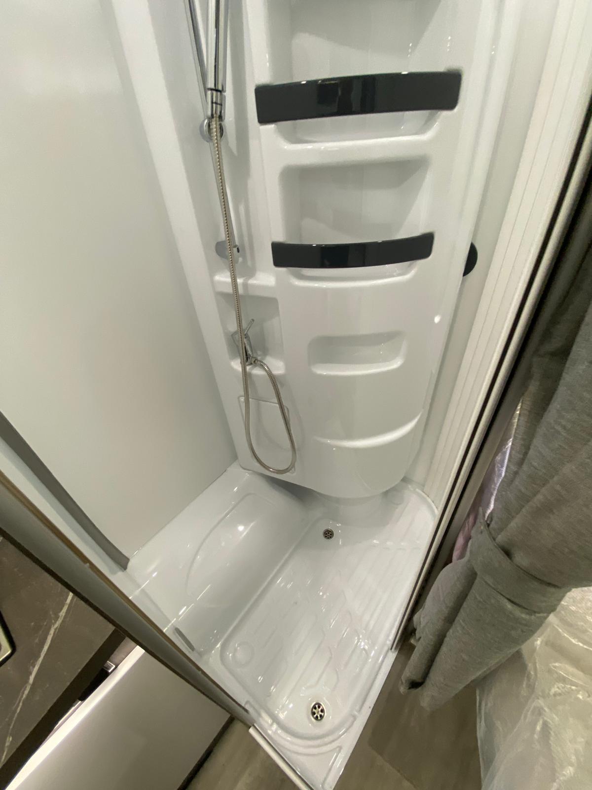• Baño: Compacto pero eficiente, el baño incluye ducha independiente, toallero y puerta corredera, optimizando el espacio sin comprometer la comodidad.